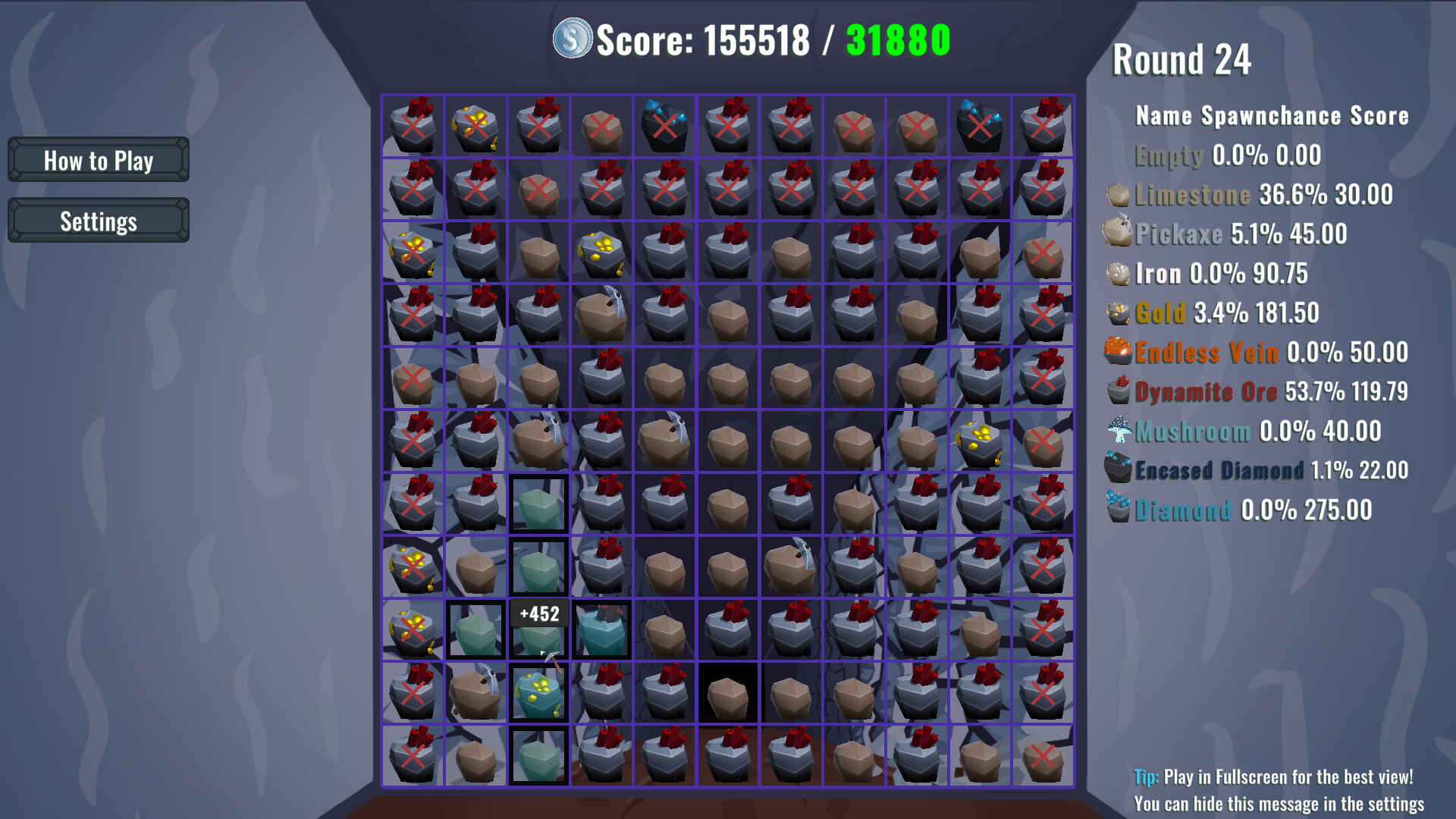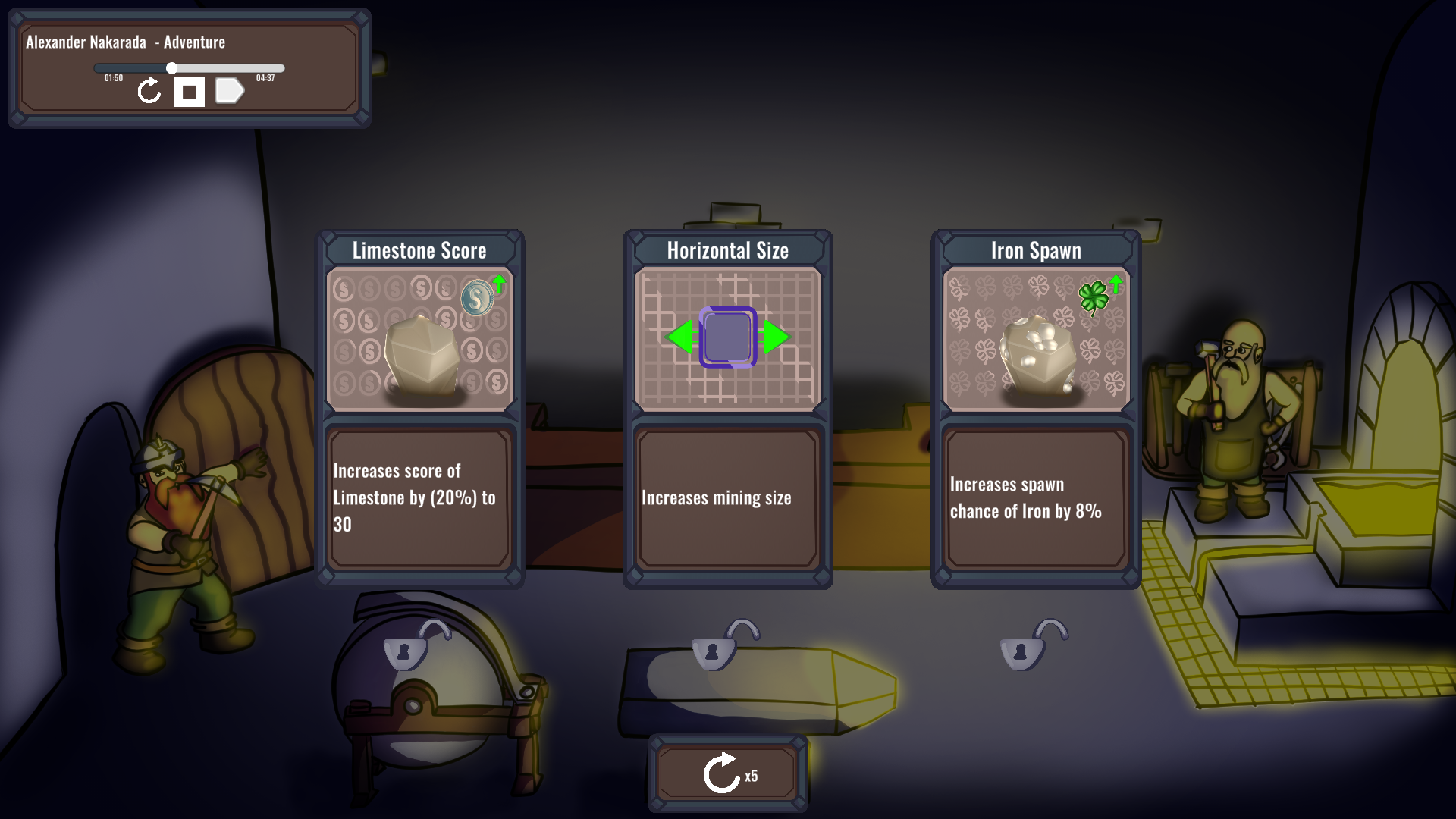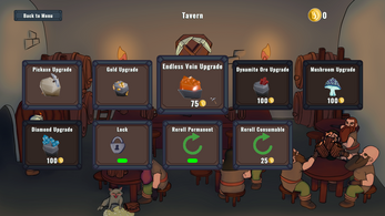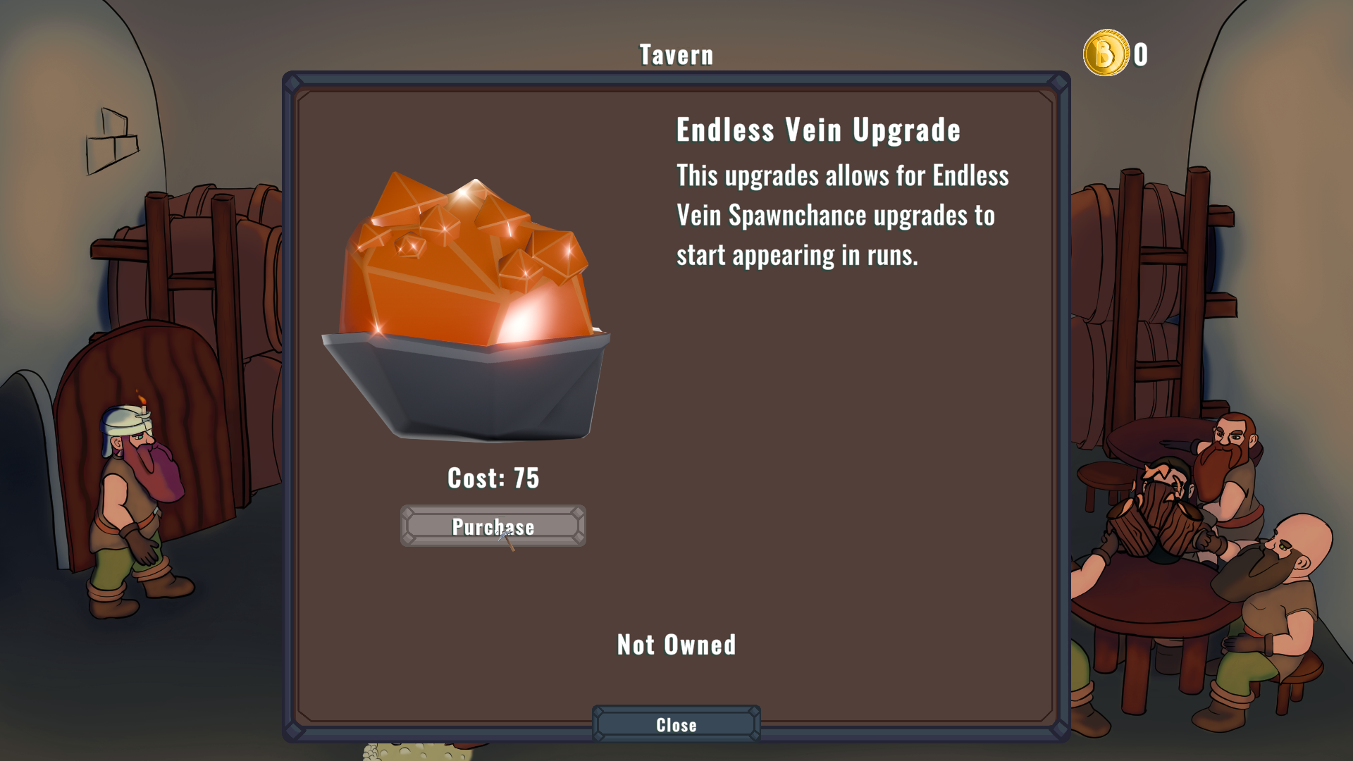 Wish there was more progression/items in the tavern. A repeatable upgrade that gives each individual tile a chance to survive it's cave-in round. I'd also love to be able to unlock upgrades that decreases the spawn chance of lesser ores.